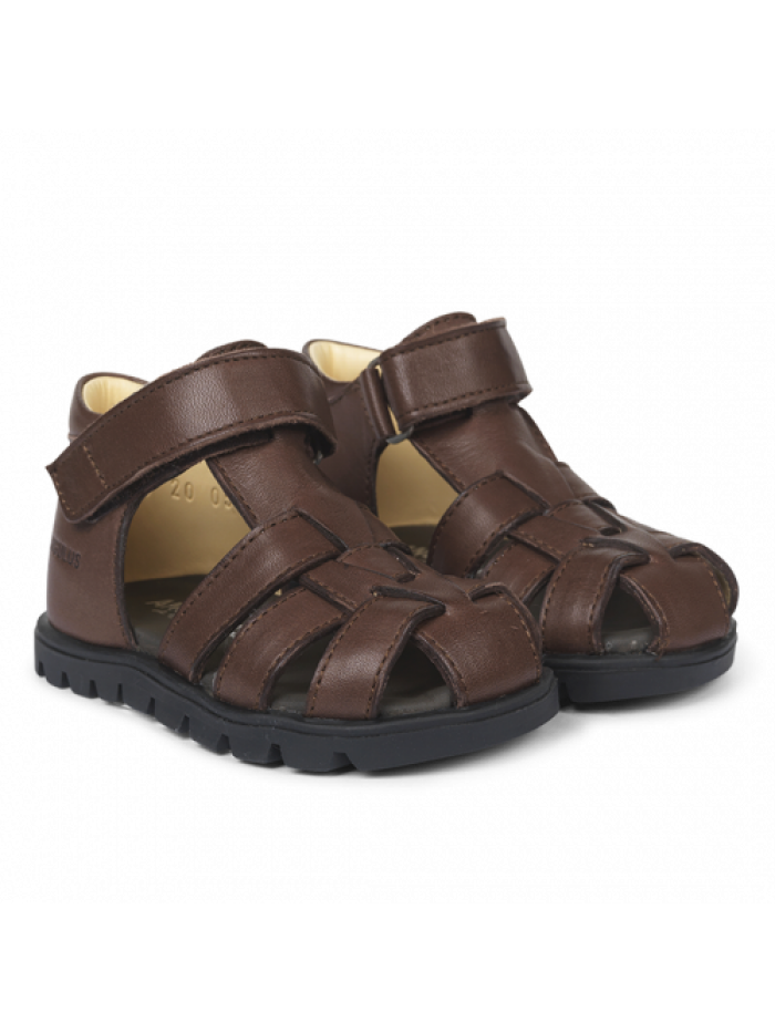 Sandal with embroidery detail and adjustable velcro closure. Closed toe and solid heel cap for maximum support. Soft and flexible crepe rubber sole. Made from 100% leather in line with ANGULUS' dna. Lined with 100% chrome-free leather. Produced in Portugal. We recommend measuring your child’s feet to make sure you are buying the right size. We recommend 0.5-0.6 inches for proper growth.